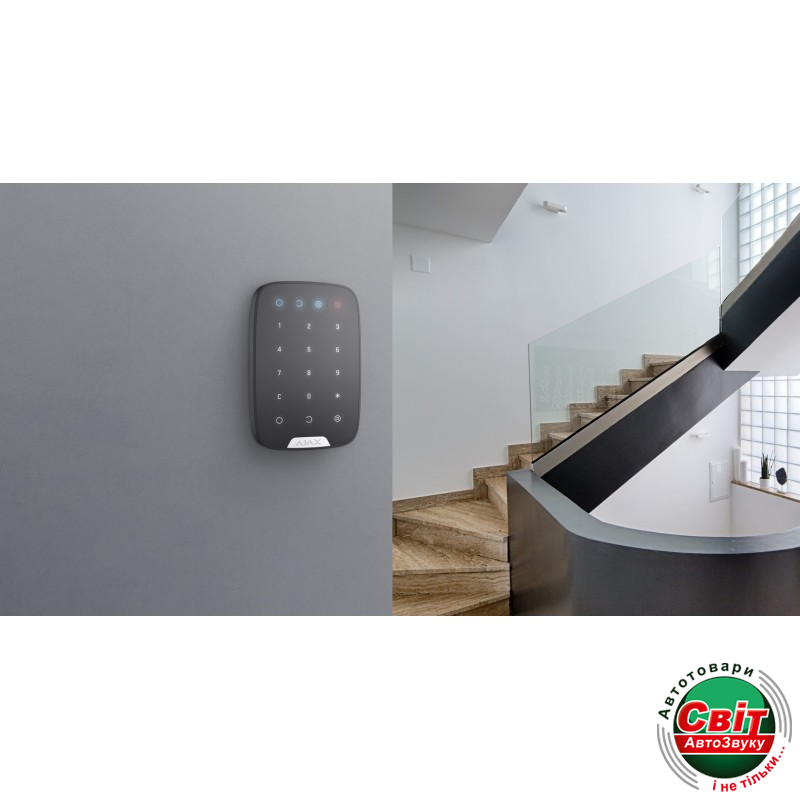 Клавіатура Ajax Keypad blackAjax KeyPad - беспроводная сенсорная клавиатура используется для снятия и постановки на охрану системы безопасности Ajax. Устанавливается в помещение возле входных дверей для быстрого доступа к клавиатуре.
