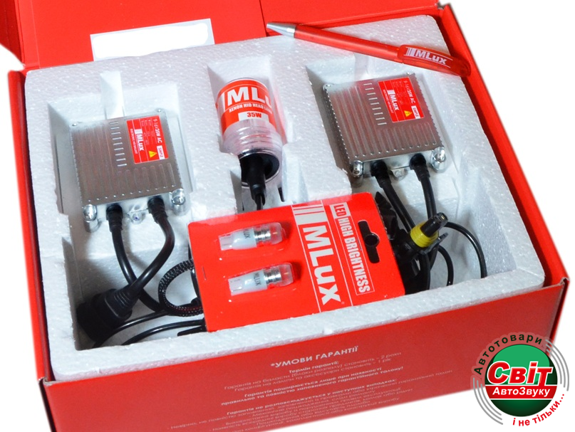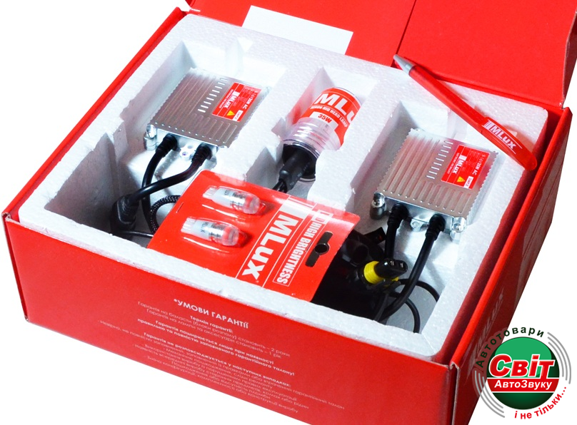 В комплект поставки входит: ксеноновая лампа MLux 35 Вт (2 шт.), электронный балласт (блок розжига) MLux SIMPLE 9-16 В 35 Вт (2 шт.), аксессуары для установки и монтажа, гарантийный талон.