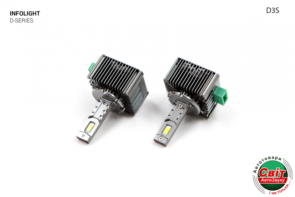 Комплект світлодіодних ламп Infolight D3 35WСвітлодіодна LED лампа Infolight D - Series - це новинка у світі автомобільних LED ламп з ідеальним насиченим світлом.