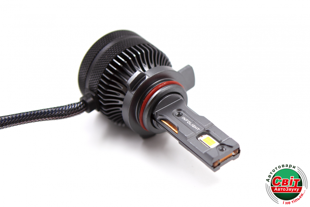Комплект світлодіодних ламп Infolight S3 головною особливістю яких є технологічність, система інтелектуального охолодження, компактність конструкції, надійність. Встановлення ламп проводиться у блок фар головного світла. Конструкція лампи дозволяє легко встановити її в гніздо під цоколь. Infolight S3 мають ефективні 3570 TOP CSP LED chip кристали, що дозволяє збільшити світловий потік до 12400 Лм з робочою потужністю 60 Ватт. Система охолодження ламп побудована на базі радіатора та кулера (пасивне/активне), це найнадійніший і найрезультативніший спосіб, який добре працює з потужними кристалами. Корпус виготовлений з авіаційного алюмінію, що дає хороші теплообмінні характеристики. Правильне розміщення діодів на лампі дає чіткий світло-тіньовий кордон, що забезпечує Вам та водіям зустрічних автомобілів комфорт при нічній їзді. Наявність вбудованого модуля обманки (CANBUS) гарантує працездатність у 90% випадків із усіма сучасними марками автомобілів.