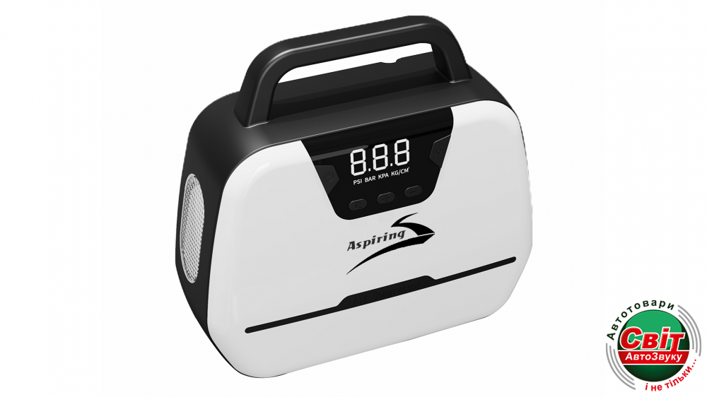 Компресор автомобільний Aspiring Airflow 2Автомобільний компресор – вірний супутник водія. Незалежно від того, чи в гаражі ви або в дорозі, якщо у багажнику авто є такий аксесуар, то вам не доведеться постійно їздити в сервіс, коли необхідно підкачати шини. А з насадками в комплекті одинпоршневий компресор перетворюється на електричний насос для коліс велосипеда, матраца, човна, м’ячів і інших накачуваних об’єктів.