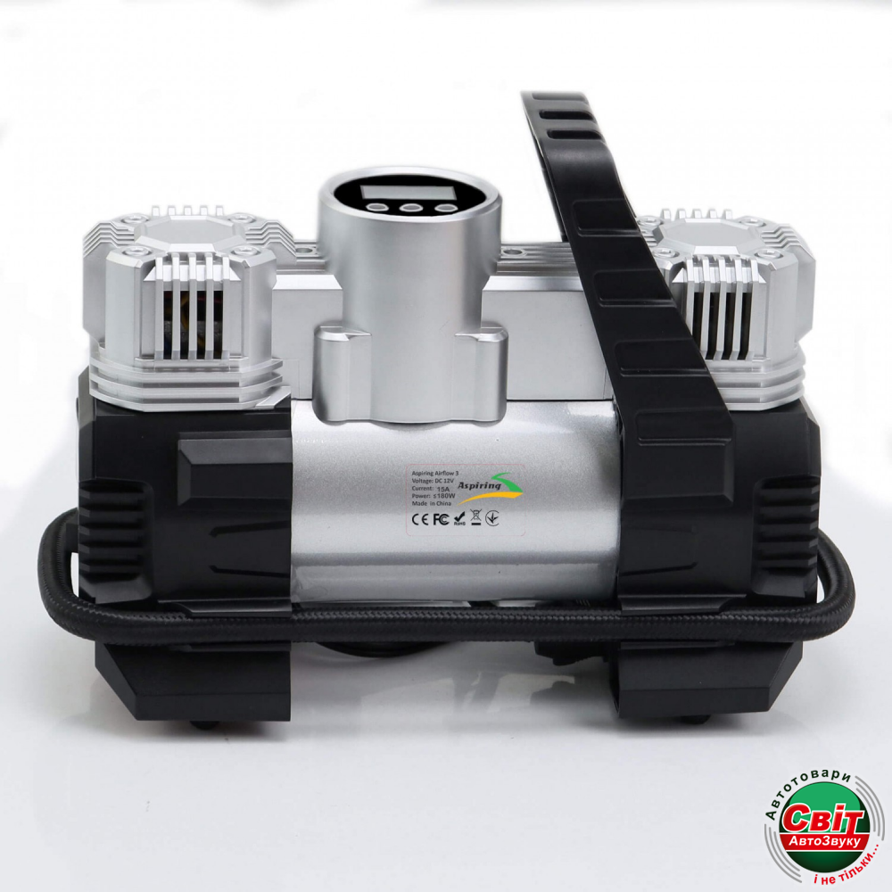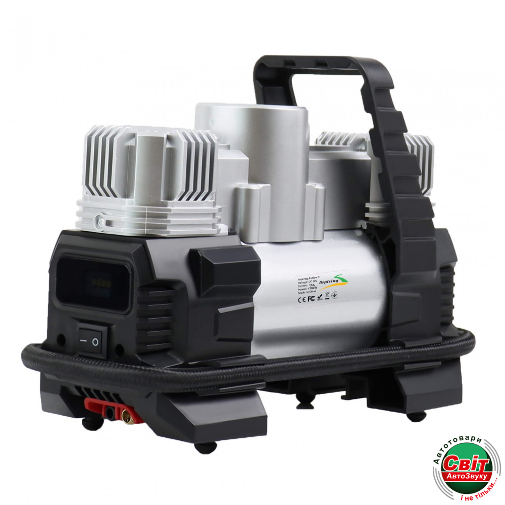 Компресор автомобільний Aspiring Airflow 3Автомобільний компресор – надійний помічник водія. Незалежно від того, чи ви в гаражі, чи в дорозі, з цим аксесуаром у багажнику вам не доведеться постійно їздити в сервіс для підкачування шин. Завдяки насадкам у комплекті, двопоршневий компресор можна використовувати для коліс велосипеда, матраців, човнів, м'ячів та інших надувних предметів.