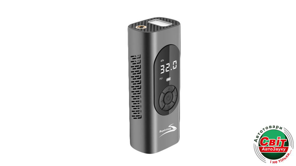 - Може використовуватися для визначення тиску в шинах, має вбудований ліхтарик для тривалого освітлення.