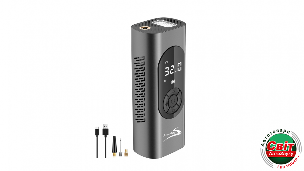 - Портативний автокомпресор оснащений декількома універсальними насадками для накачування, які знадобляться вам в різних ситуаціях.