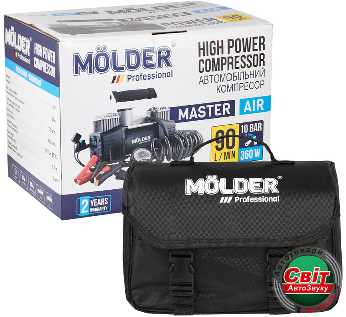- ›Компресор автомобільний Molder MA25200 12В, 10 Атм, 90 л/хв із зажимами АКБ