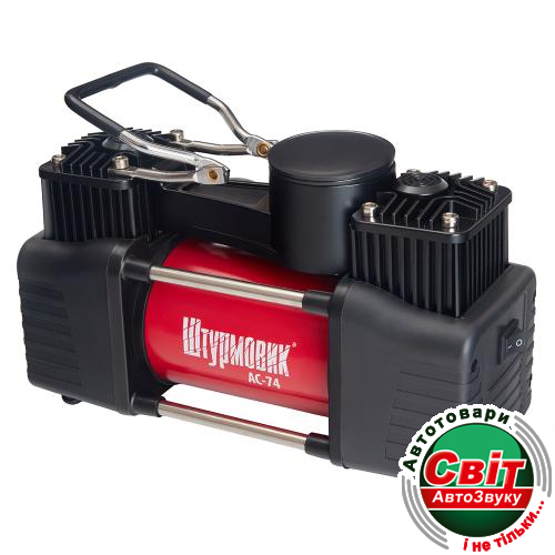 Компресор «Штурмовик» AC-74 — потужний автомобільний двоциліндровий компресор професійного класу, призначений для швидкого та ефективного накачування шин легкових авто, позашляховиків, мікроавтобусів, а також спортивного інвентарю. Завдяки двом металевим циліндрам і високій продуктивності забезпечує стабільну роботу навіть під великим навантаженням.