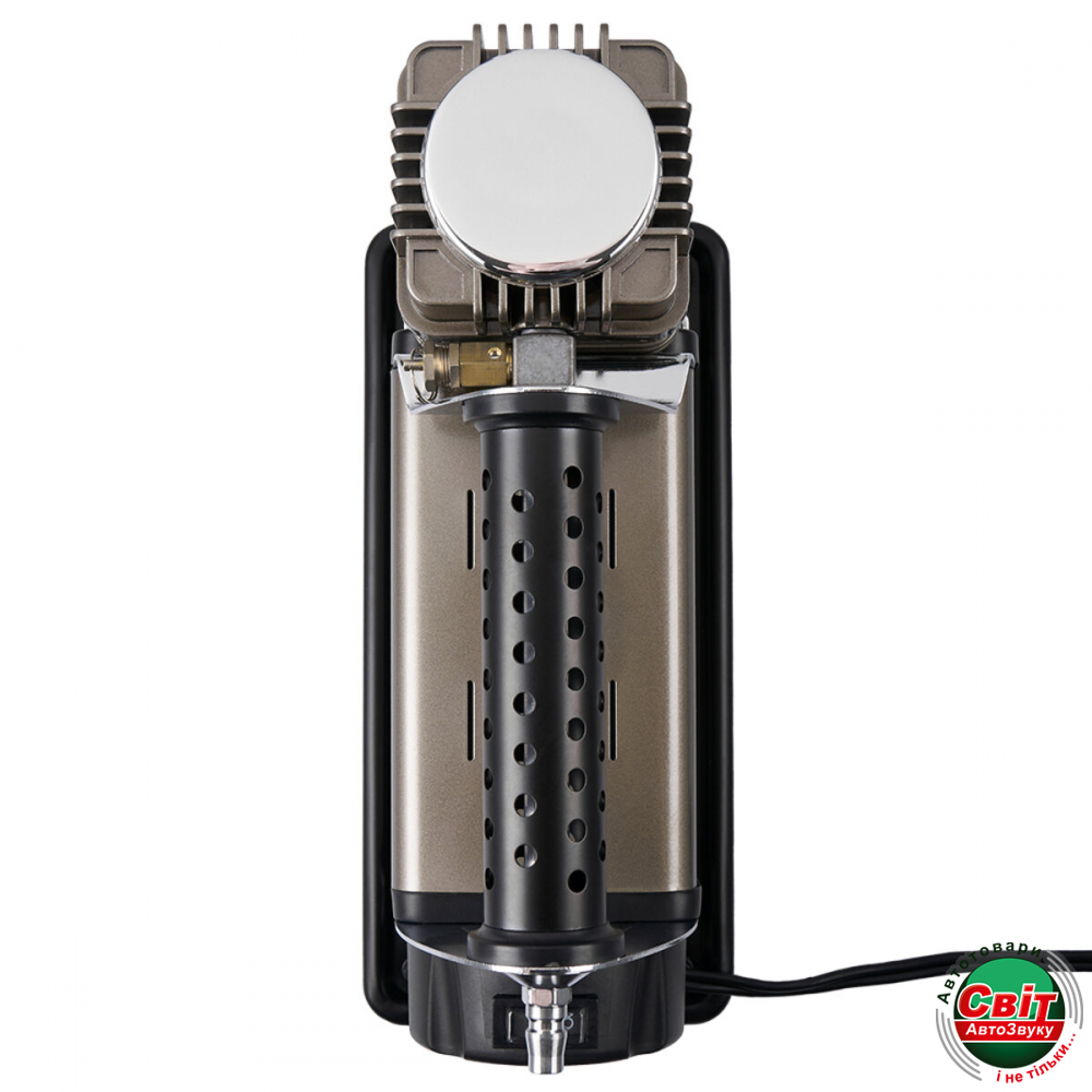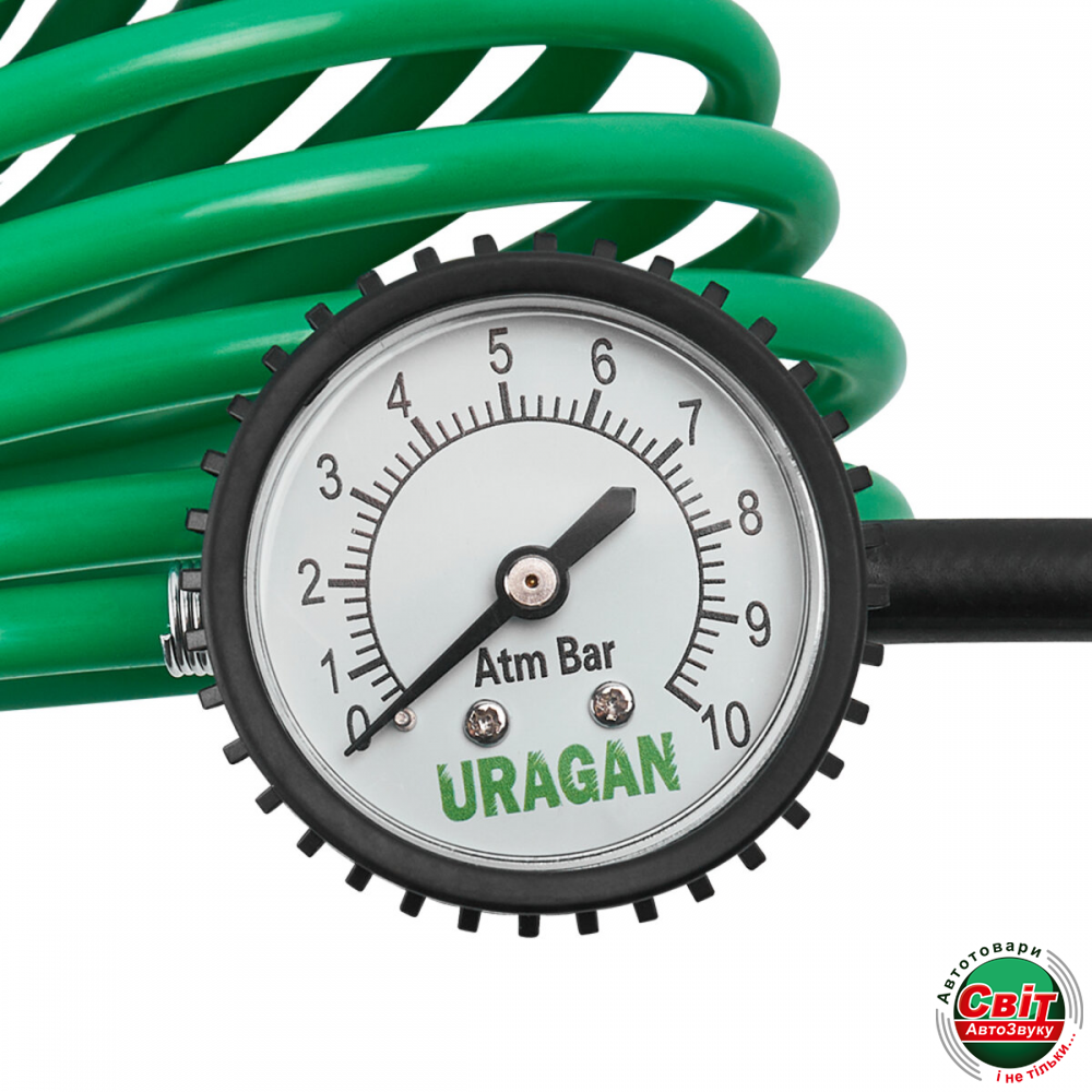 Компресор автомобільний Uragan 90220, професійний, високої потужності. Високоточний манометр з вмонтованим запобіжником, зручна сумка для транспортування та додаткові адаптери.