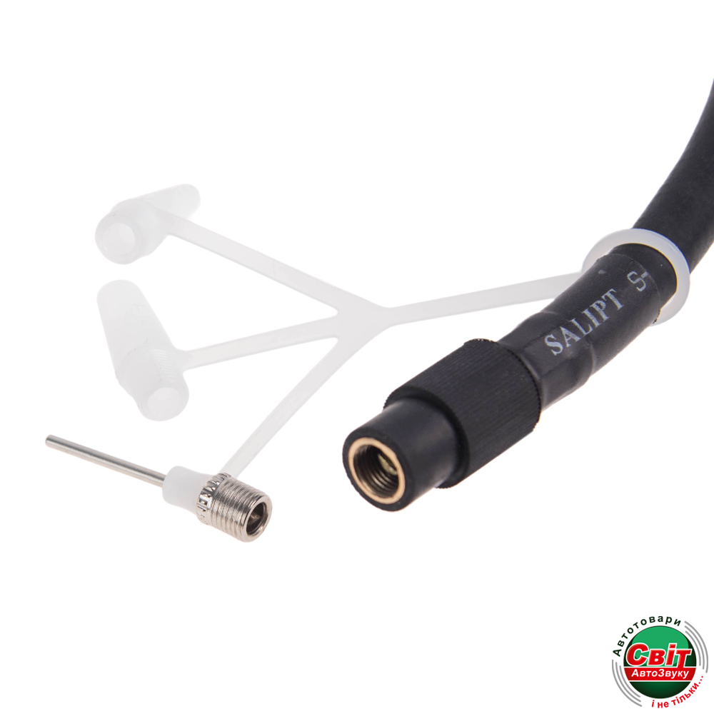 Призначений для накачування автомобільних коліс чи інших надувних виробів. Дана модель має спіральний шланг довжиною 7м і манометр для контролю роботи. Компрессор працює від 12В, а максимальне тиск становить 10атм.