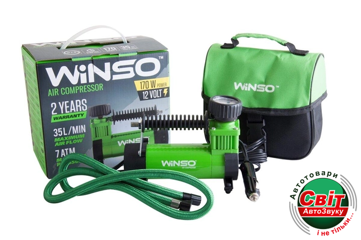 - ›Компресор автомобільний Winso 7 Атм 35 л/хв 170Вт, кабель 3м, шланг 1м (127000)