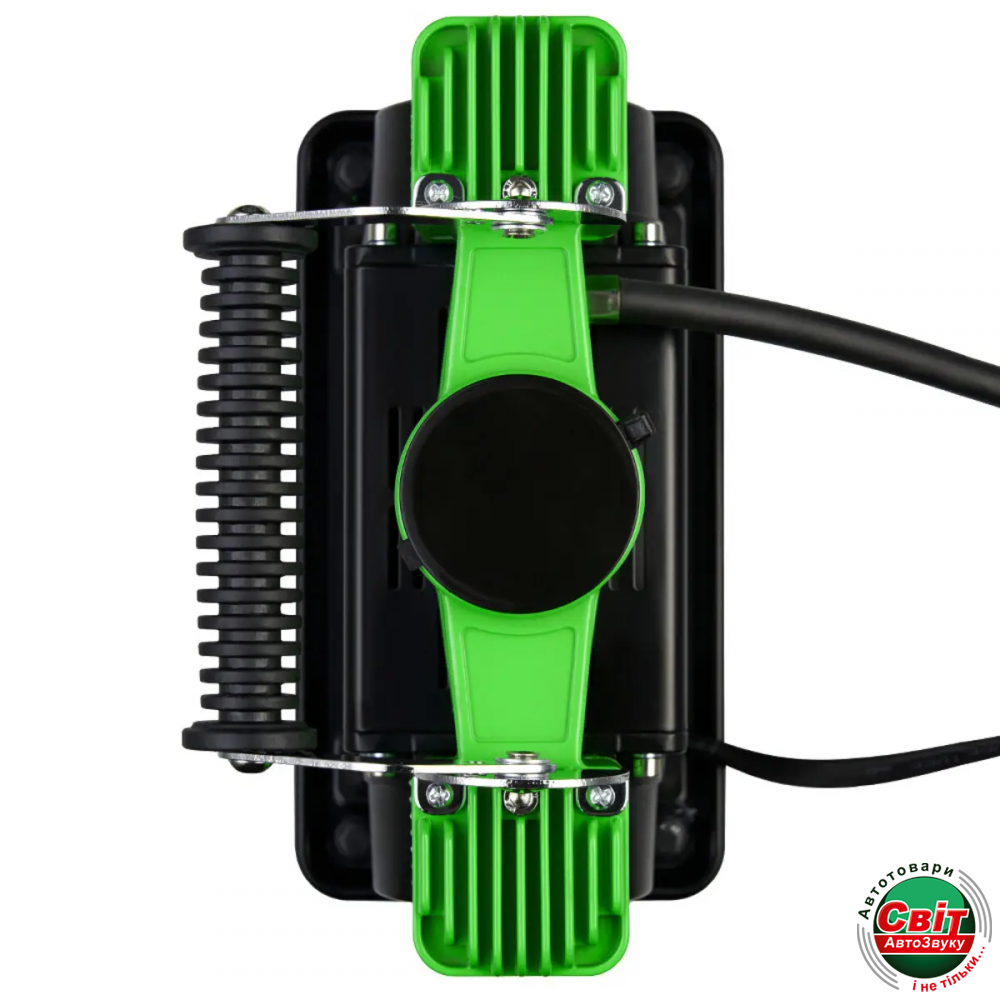 Незамінний пристрій в транспортному засобі для тих, кому важливе безпечне і комфортне використання автомобіля. Без проблем піднімає тиск в шинах до необхідного рівня за рахунок великого максимального тиску, який становить 10 атм. Досить швидко накачає необхідне спущене колесо за допомогою своєї продуктивності в 90 л/хв. Компресор є двопоршневим з цифровим манометром, що дозволить орієнтуватися на показники і з легкістю піднімати тиск до потрібного рівня. Завдяки довжині кабелю живлення і довжині повітряного шланга, є можливість використовувати прилад на пристойній відстані від необхідного колеса. Корпус виготовлений з міцного матеріалу, який збільшує надійність пристрою, а також збільшує максимальний час експлуатації.