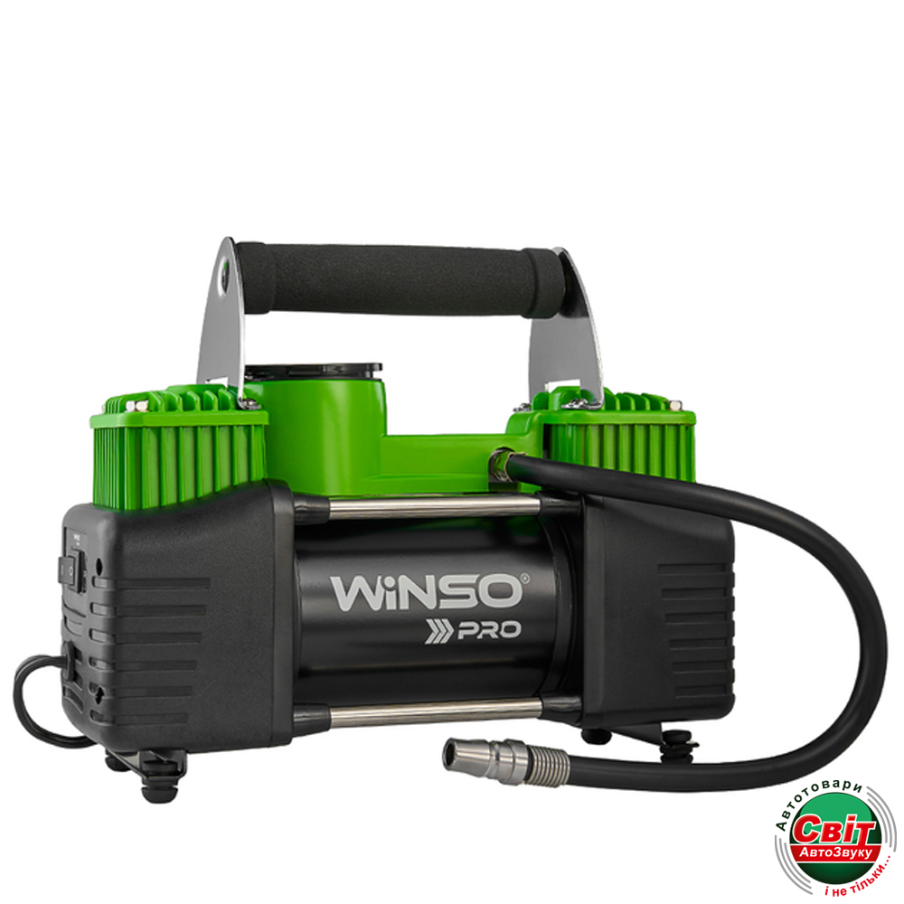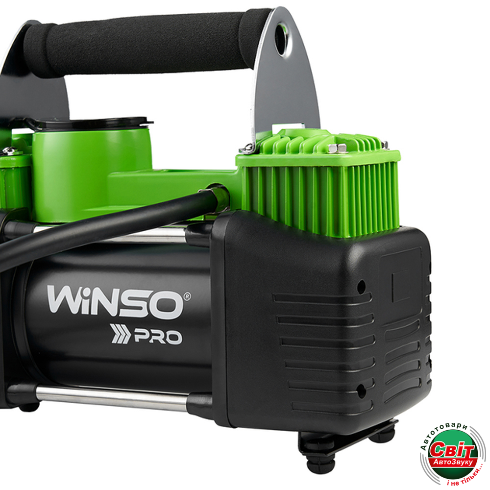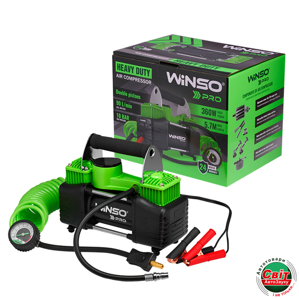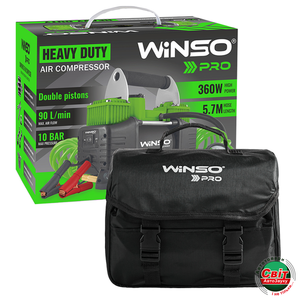 Компресор автомобільний Winso Pro Heavy Duty 12В, 10 Атм, 90 л/хв із зажимами АКБ 136000Компресор Winso Pro Heavy Duty призначений для виходу їз ситуацій з випадковими ушкодженнями колеса, зокрема його пробиття, відсутності чи недостатньому тиску.