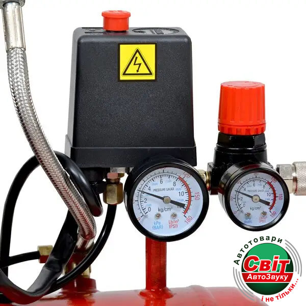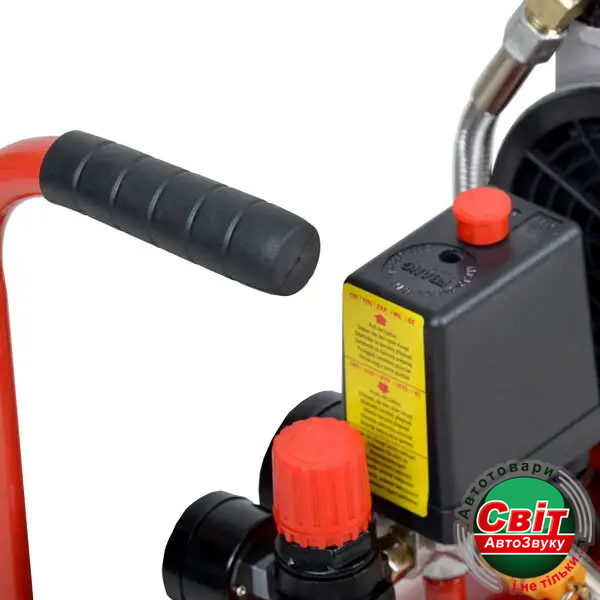 Агрегат стисненого повітря оснащений 50-літровим баком. Завдяки шинам і натискній ручці компресор легко переміщується і тому ідеально підходить для мобільного використання. Шасі дуже міцне і стійке.
