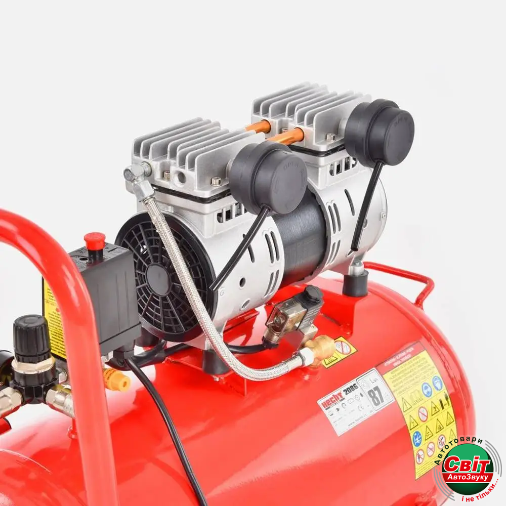 - HECHT 2086 Електричний безшумний безмасляний компресор для невеликих майстерень і гаражів.