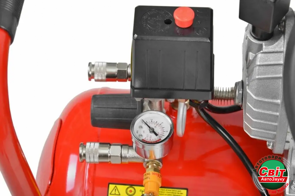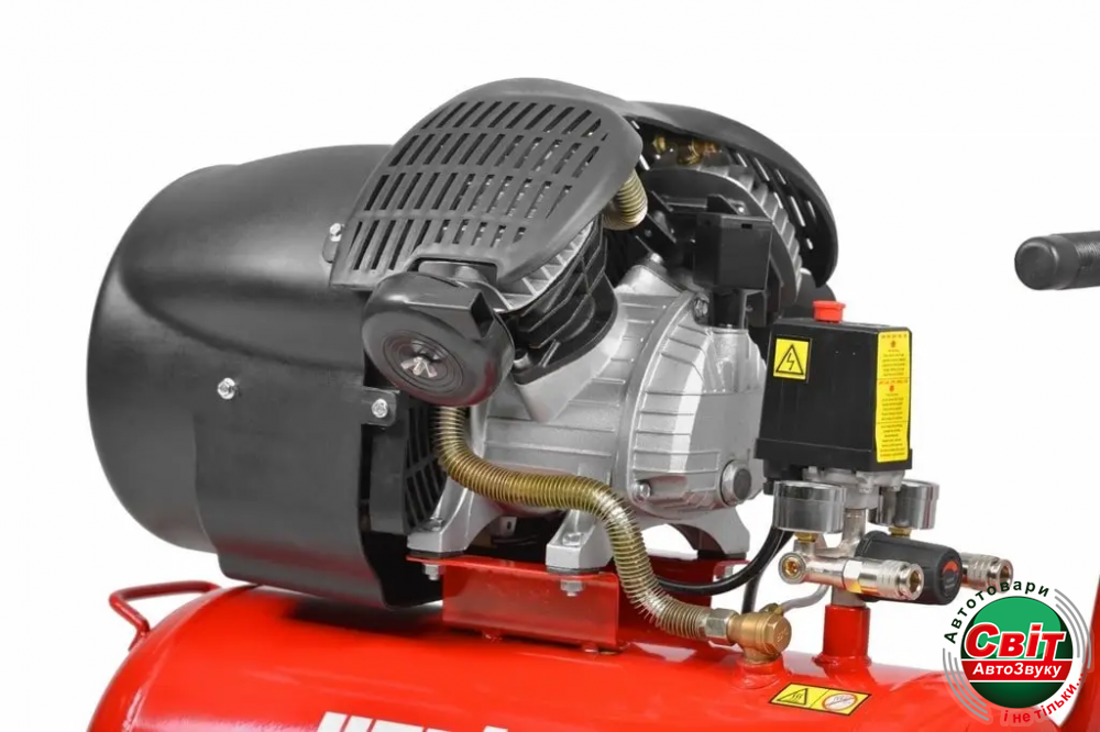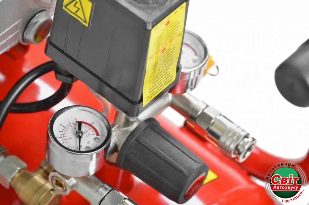 Двигун обладнаний регульованим клапаном з манометрами, що показують значення тиску. Щоб продовжити термін служби компресора, його оснастили поршнем з масляним охолодженням і спеціальним клапаном, який використовується для видалення води, що накопичується всередині бака, що захищає його від корозії.