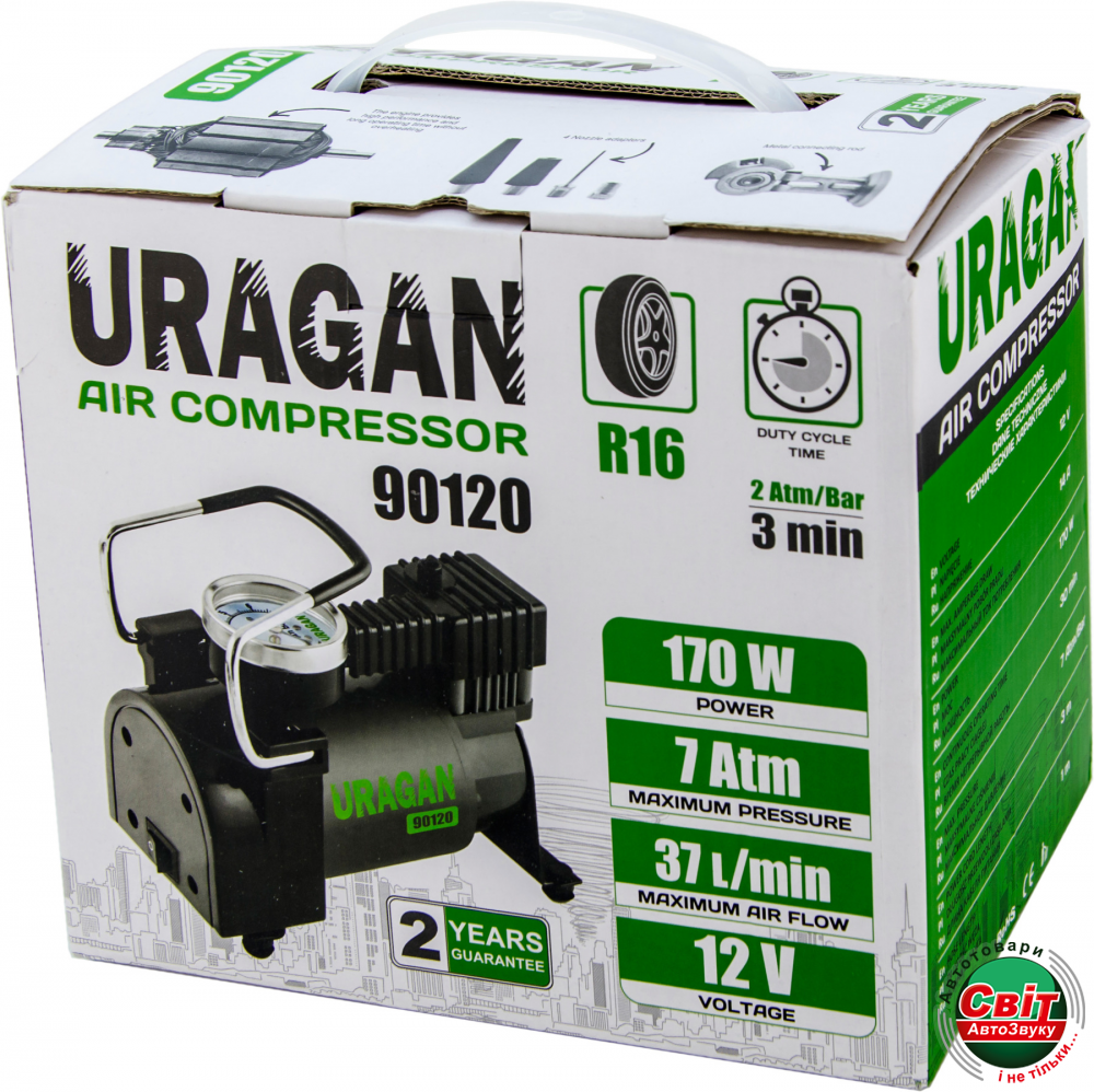Автокомпресор Ураган 90120 7Атм 170Вт
