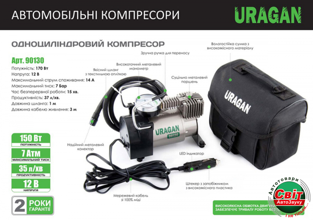Компресор автомобільний Ураган 90130 7 Атм 37 л/хв 170 Вт