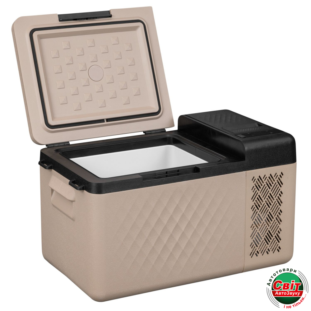 Холодильник має ударостійкий зносостійкий корпус. Оснащений контрастним LCD-дисплеєм та замком кришки (захист від ненавмисного відкривання).Діапазон температур в камері: від -20°C до +20°C.