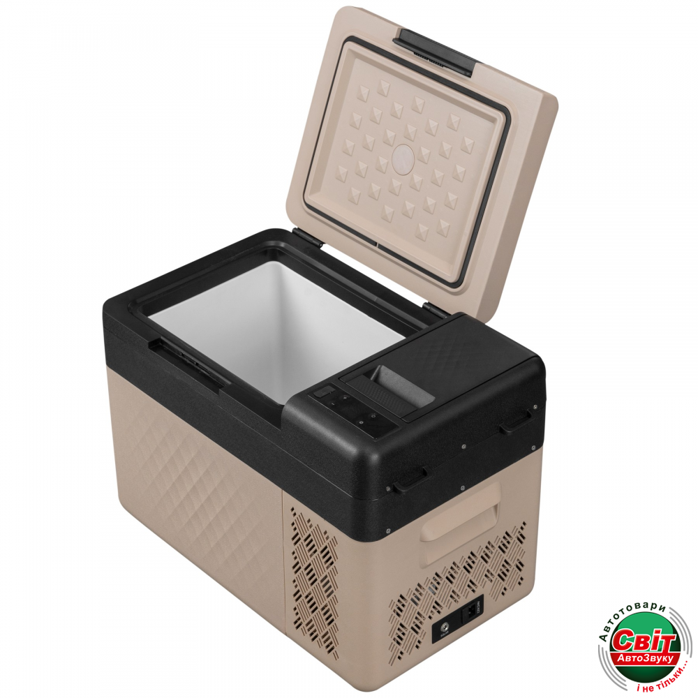 Холодильник має ударостійкий зносостійкий корпус. Оснащений контрастним LCD-дисплеєм та замком кришки (захист від ненавмисного відкривання).Діапазон температур в камері: від -20°C до +20°C.