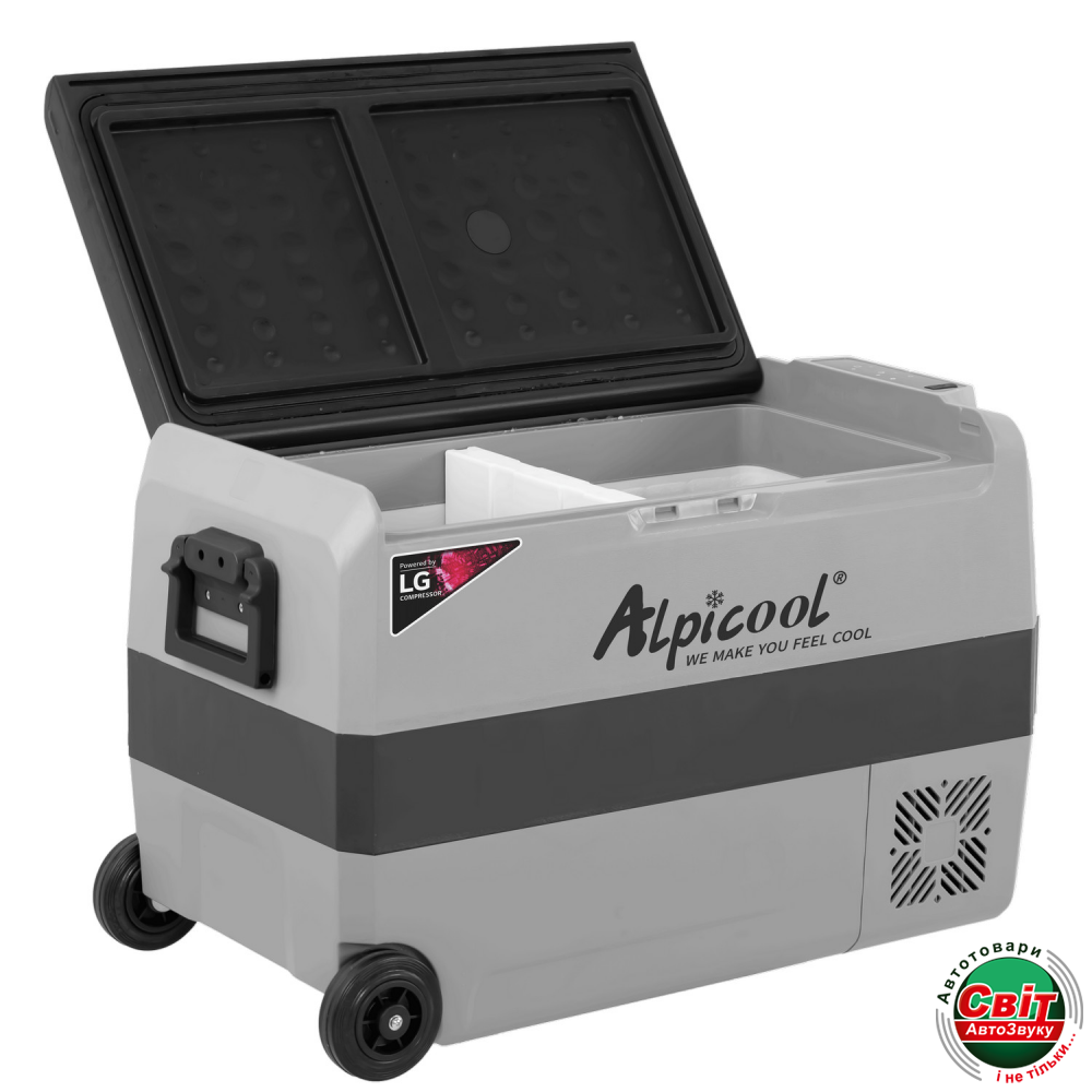 - ›Компресорний автохолодильник Alpicool T50 (LG) (двокамерний, 50 літрів). Режим роботи до -20°C. Живлення 12, 24, 220 вольт