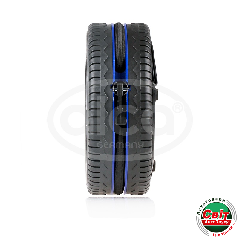 Автомобільний компресор Alca 241 500С помощью воздушного компрессора от ведущей немецкой компании ALCA Вы можете легко накачать шины Вашего автомобиля, камеру велосипеда, мячи, надувные лодки или детские игрушки. Насос готов к работе после подключения к прикуривателю. Корпус выполнен в форме колеса и имеет нишу сзади для укладки провода, шланга и переходников. Длина кабеля составляет 3 метра