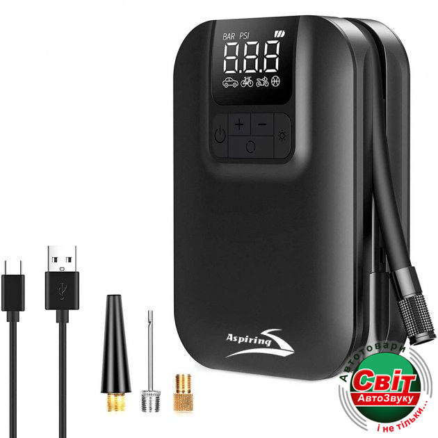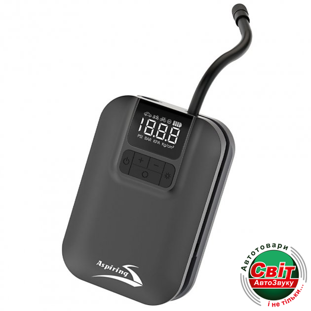 Компресор автомобільний Aspiring Storm 1Портативний компресор для авто Aspiring Storm 1 незамінним в місті і для заміських поїздок. Це надійний механізм для накачки автомобільних коліс та інших надувних виробів. Корпус компресора виготовлений з міцного пластику, який забезпечує високу стійкість до ударів і тривалого часу роботи.