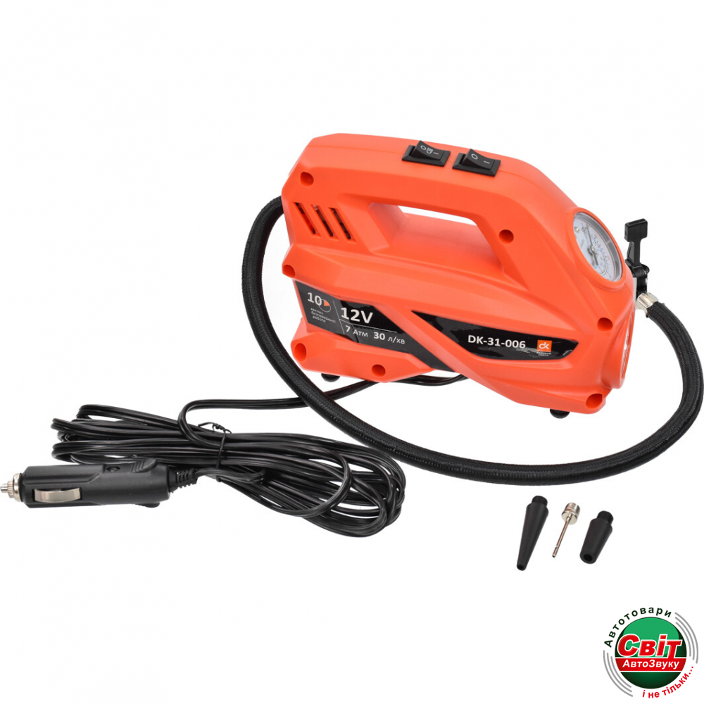 Автомобильный компрессор Дорожная Карта DK-31-006 является неотъемлемой частью автомобиля. Компрессор оснащен двигателем постоянного тока коллекторного типа, способным перекачивать воздух до 7 атмосфер, что позволит вам легко поднять давление в шинах до необходимого уровня. Питание устройства осуществляется от кабеля питания, подключенного к бортовой сети автомобиля (12 В) с помощью вилки прикуривателя. Корпус цилиндра изготовлен из качественного прочного металла, что обеспечит долгий срок службы устройства.