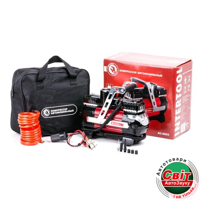 Компактный автомобильный компрессор INTERTOOL AC-0003 станет вашим надежными помощником в гараже, в дороге или в путешествии. Рабочее давление до 7 атмосфер позволит накачать до рабочего состояния колеса автомобиля, мотоцикла или велосипеда, а также мячи, матрацы, круги и любые другие надувные изделия благодаря набору насадок, который поставляется в комплекте.