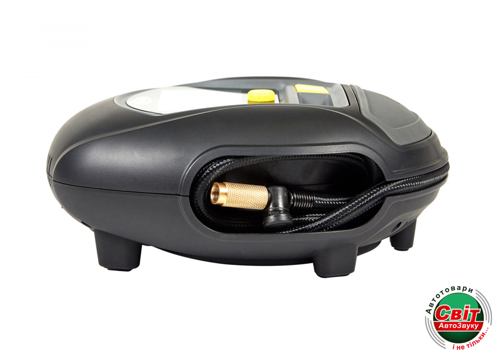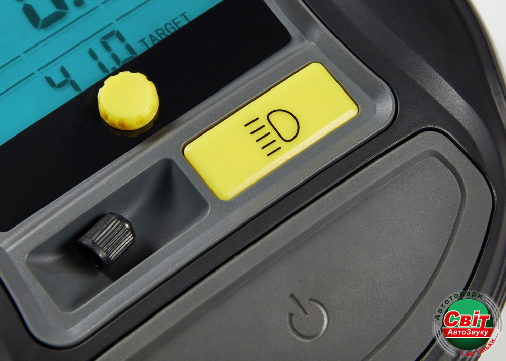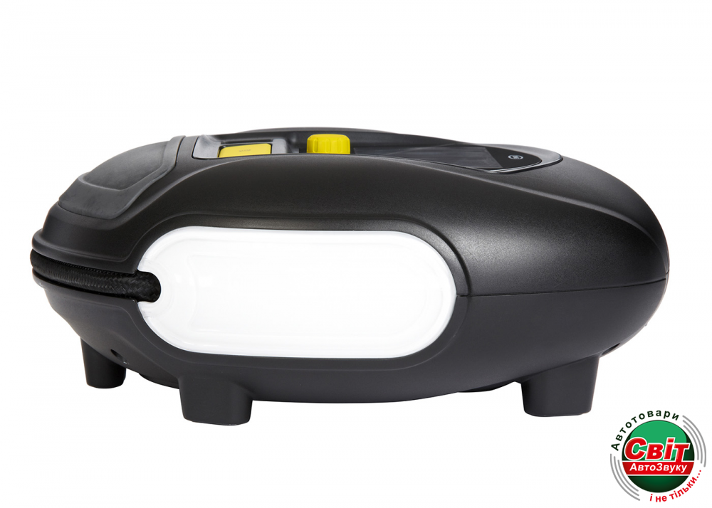 Данный насос отличается довольно-таки компактными размерами, его можно хранить в багажнике, используя, при необходимости, по назначению. Имеет белую подсветку, что упрощает эксплуатации в ночное время. Также оснащен большой кнопкой для включения или выключения. Данный компрессор комплектуется дополнительно тремя насадками для накачивания велосипедных шин, разных надувных предметов лодок, других приспособлений.