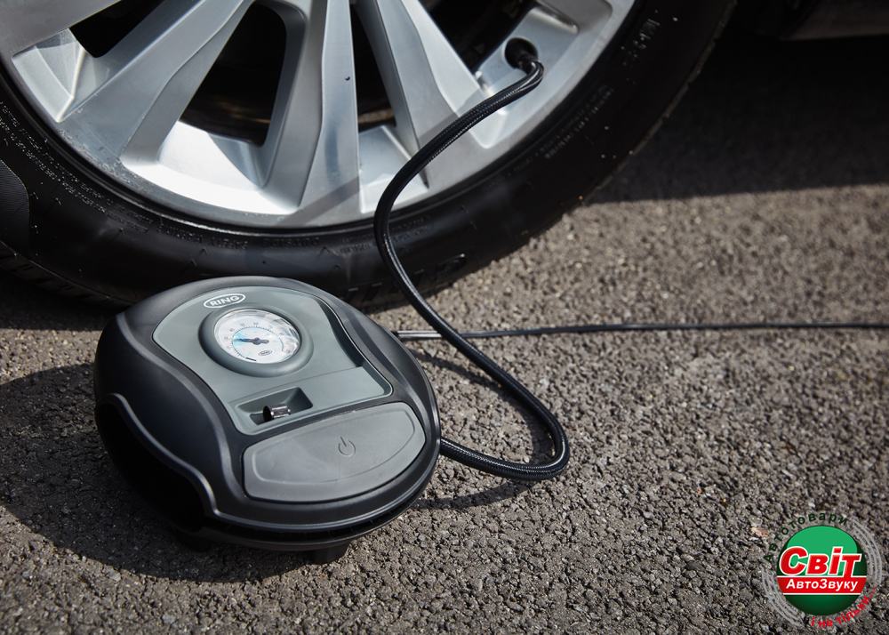 Компресор має плоску форму, зручний у транспортуванні та використанні. Пристрій має велику кнопку для вмикання і вимикання, вона проста в застосуванні, її легко можна натискати брудними руками або з поганим освітленням. Комплектується насос додатково трьома адаптерами для накачування шин велосипедів, надувних човнів або матраців.