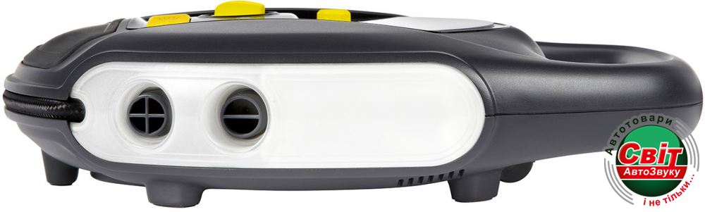 - Оснащений кабелем живлення 3,3 м і штекером 12 В пост. струму з плавким запобіжником, які допомагають дістатися до ніпелів, розташованих в самих важкодоступних місцях