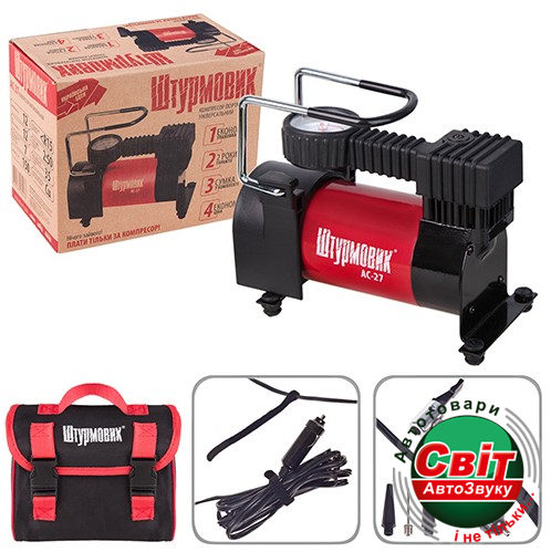 Компресор автомобільний Штурмовик AC-27Бюджетний компресор в металевому корпусі.