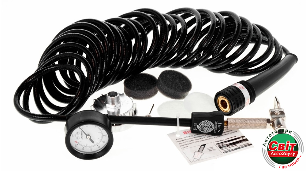 БЕРКУТ R24 також оснащений універсальним крученим шлангом-подовжувачем з точним манометром і клапаном DEFLATOR для точного регулювання тиску в шині.