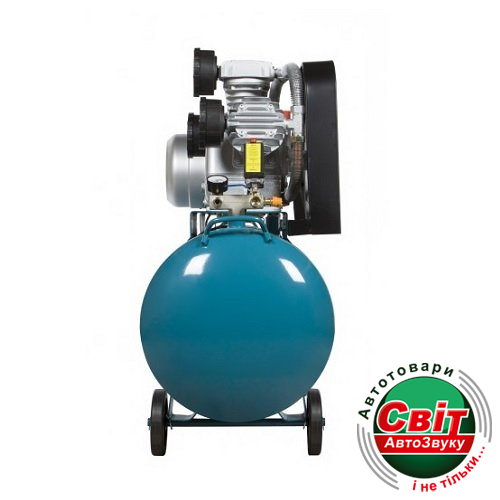 Объем ресивера данной модели составляет 250 л. Этого вполне достаточно, чтобы обеспечить необходимое количество сжатого воздуха для работы различных видов пневмоинструментов. Модель компактна и удобна в использовании. Дополнительно оснащена колесиками для легкости перемещения.