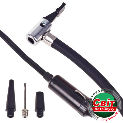 Комплектація: паковання, компресор, сумка для зберігання, інструкція з гарантійним талоном, комплект адаптерів.