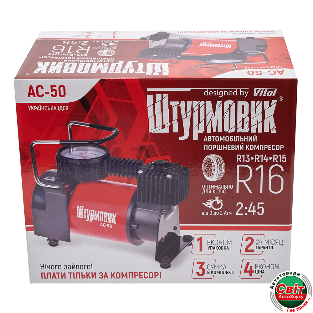 Компресор Штурмовик AC-50Автомобільний компресор Штурмовик АС-50 розроблений професіоналами автомобільного ринку спеціально для українських покупців.