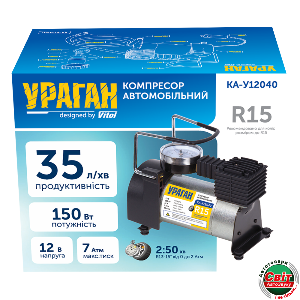 - ›Компресор автомобільний Vitol KA-У12040 Ураган