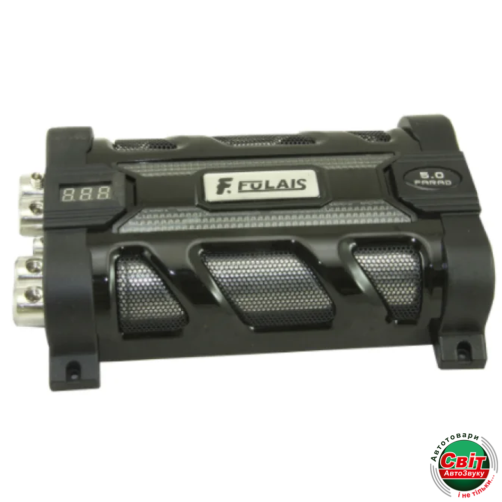 Конденсатор Fulais FLS-EC016Конденсатор Fulais FLS-EC016 – це 5-фарадний автомобільний конденсатор із цифровим вольтметром, призначений для стабілізації живлення аудіосистем. Завдяки великій ємності він акумулює енергію та запобігає просіданню напруги при різких пікових навантаженнях, що особливо актуально для потужних сабів та підсилювачів. Вбудований дисплей дозволяє контролювати напругу в бортовій мережі.