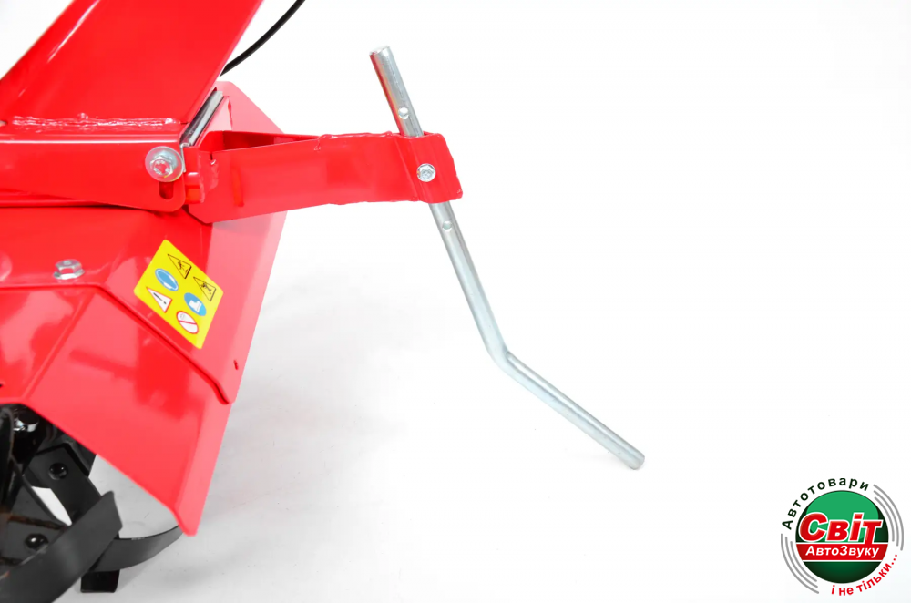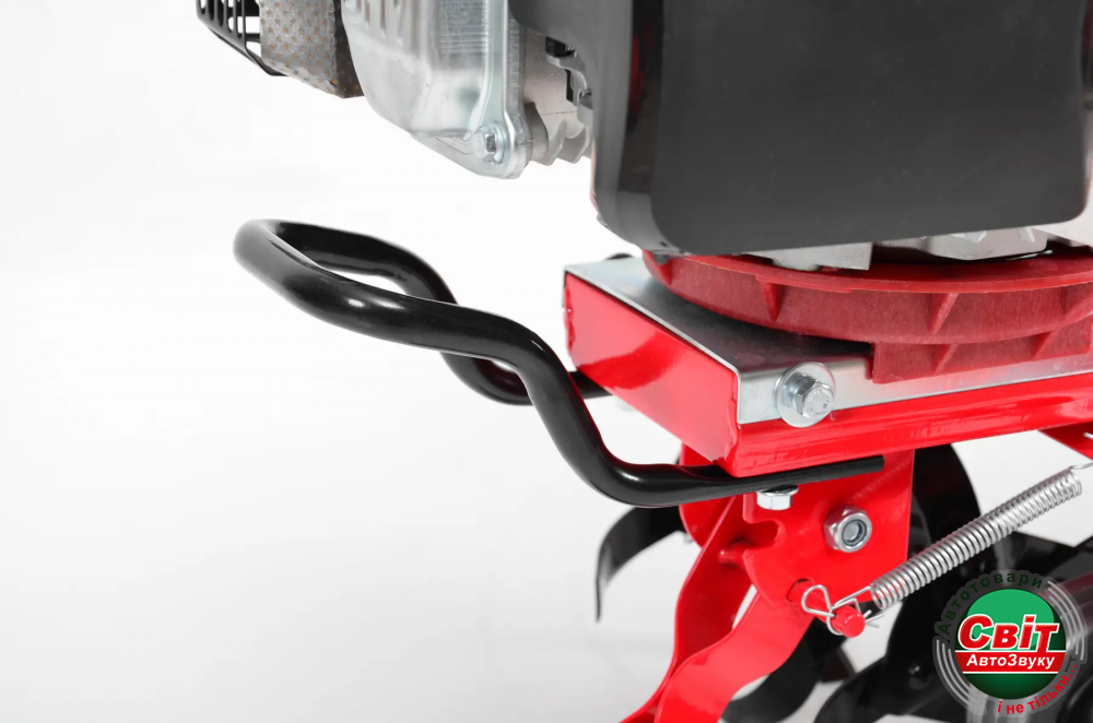 Рукоятка забезпечена важелем, який приводить у дію механізм приводу ножа, і важелем для регулювання обертів двигуна.