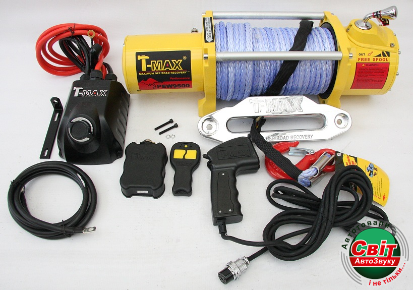 - ›Лебідка T-Max PEW-9500 Performance Series Radio 12V/4,305т/синт.трос 9,4mm*28m