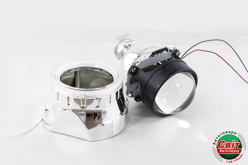 Лінзи біксенонові Infolight G5 Super тип2 (с АГ) (пара)Infolight G5 Super 2,5" - биксеноновые линзы с ангельскими глазками, отличающиеся улучшенными световыми характеристиками. Превосходство над стандартными G5-линзами достигнуто посредством усовершенствования внутреннего покрытия линзы и улучшения геометрии отражателя. Индивидуальность автомобиля подчеркивают декоративные маски с ангельскими глазками, которые входят в комплект. С помощью специальной шторки и встроенного соленоида осуществляется переключение ближнего / дальнего света.