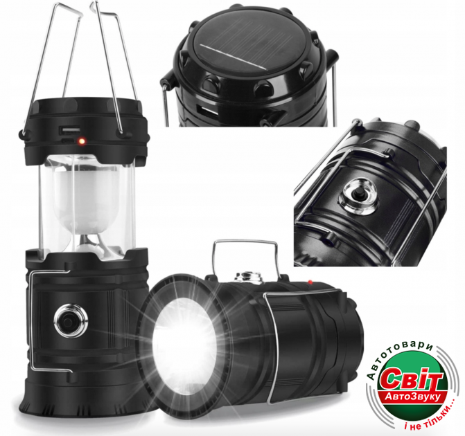 Ліхтарик ORION OR-5800T (з сонячною батереєю)Кемпінговий ліхтар зможе відсвітити будь-яке місце в будь-який час завдяки вбудованому акумулятору який можна зарядити від звичайної розетки 220 або від денного світла завдяки сонячній панелі.