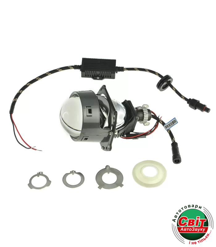 Для зручності встановлення передбачені адаптери для цоколів H7 та H4, а зовнішній LED контролер гарантує стабільну роботу системи. Лінза також оснащена ефективною системою охолодження: алюмінієвий радіатор у поєднанні з вентилятором, що запобігає перегріву та збільшує термін служби пристрою.