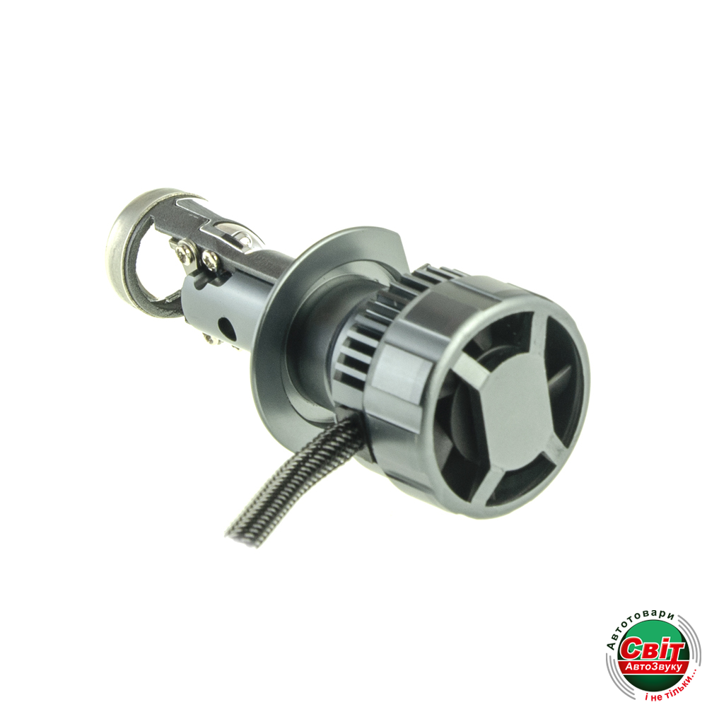 Радіатор з авіаційного алюмінію з великою площею та вбудований кулер ідеально відводить тепло від лампи, що дозволяє використовувати світлодіоди на повну потужність. При цьому ні лампа, ні штатна оптика автомобіля не перегріваються.