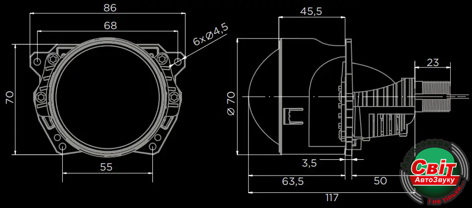 - Для комфортної установки в наборі йдуть кріплення для цоколя рефлекторних фар H7/H4/HB4.