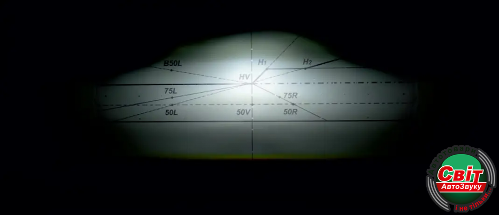 - Точний фокус діода та правильний відбивач забезпечують оптимальний розподіл світлового пучка на дорозі. Найяскравіша пляма знаходиться в центрі світло-тіньової межі та плавно розходиться по площині.