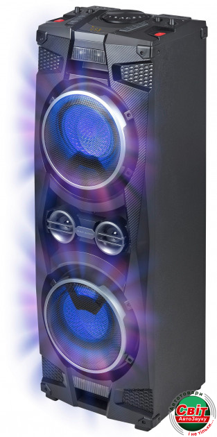 Акустична система Mac Audio MMC 910Аудіосистема Mac Audio MMC 910 має вбудований підсилювач і забезпечує максимальну потужність 1000 Вт. Вихідна потужність, функція підсилення басів, а також система Bass Reflex забезпечує глибокі баси і повний динамічний звук. Вхід USB на передній панелі з функцією зарядки, вхід AUX, FM-тюнер, підтримка Bluetooth забезпечують високу гнучкість. Ті, хто воліє створювати свою власну музику, просто підключають свою гітару або караоке-мікрофон до MMC 910. Реверберацію і гучність можна регулювати безпосередньо в звуковій системі, еквалайзер з шістьма пресетами відповідає звучанню по всім вашим вимогам. Але MMC відрізняється не тільки акустичними характеристиками, але ще і карбоновим фасадом з індивідуально регульованим світлодіодним шоу, MMC 910 стане фокусом уваги.