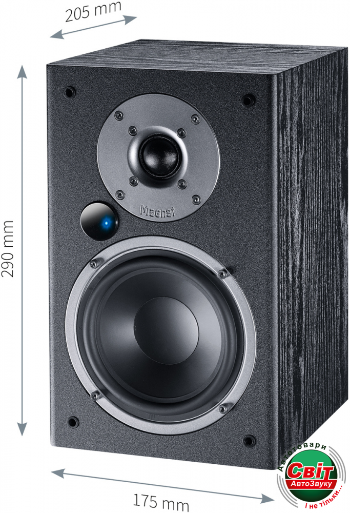 - Оснащение громкоговорителей: 1 x 125 мм низко-среднечастотный громкоговоритель; 1 x 25 мм высокочастотный громкоговоритель