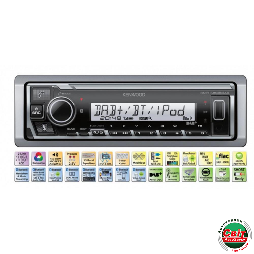 Магнітола морская Kenwood KMR-M505DABОсобенности: