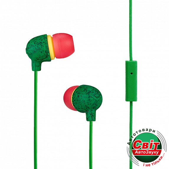 Навушники Marley Little Bird Rasta (EM-JE061-RA)MARLEY Little Bird - внутриканальные наушники с идеальным сочетанием комфорта, качества и возможностей. Колпачки изготовлены из мягкого и приятного на ощупь био-пластика, динамик Ø9мм, амбушюры из фирменного материала, на основе силикона, REGRIND создают шумоизоляцию и звучание, которое откалибровано до мелочей. Звучат эти наушники так же круто, как и выглядят. Само изделие и упаковка состоят из перерабатываемых материалов, что является концепцией компании-производителя. В комплекте 2 пары цветных амбушюр S и M размера. Штекер позолоченный низкопрофильный, на проводе находится микрофон-пульт управления звонками.