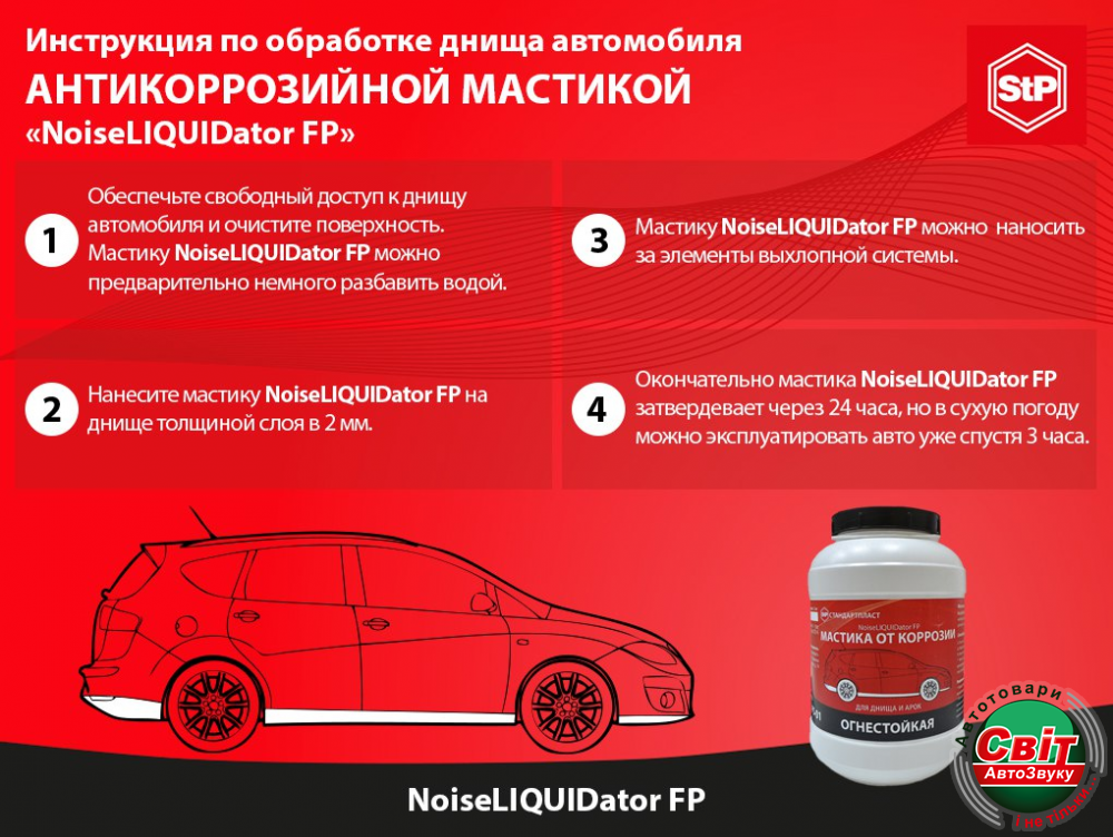 - ›Мастика StP NoiseLiquidator FP (важкогорюча, антикорозийная, вібропоглинаюча) 2кг